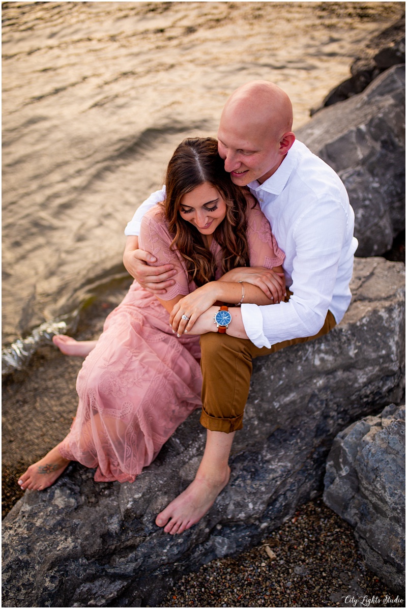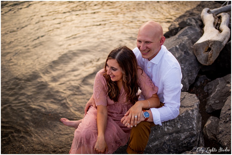I loved my time with Brian & Lauren during their e-session last week! We started late in the evening to make the most of my favorite time of day… Magic hour! We explored silos along the Buffalo River, and then headed over to Gallagher Beach for romantic sunset shots. They braved big waves, broken bottles, rocks, and plenty of dead fish to get these beautiful shots 😉 We laughed our way through the whole session, and I had a great time adventuring with them! B&L, thanks for being such easy-going sweethearts; I cannot wait to see what we create together on the BIG day!