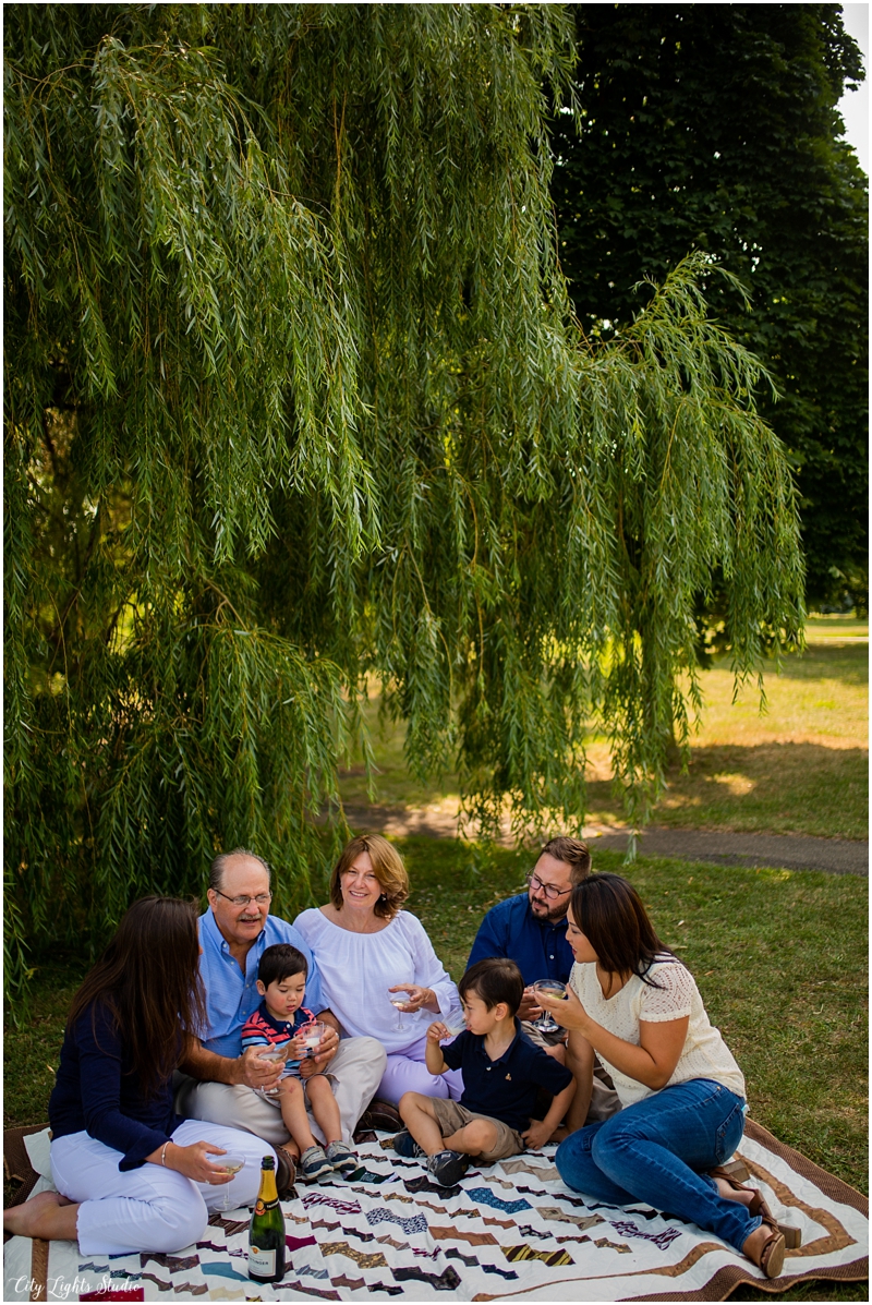 Donuts, champagne, giggles & tickles… Is there any better way to start your day!? I spent a beautiful morning with three generations of this sweet family, playing around Delaware Park. For her birthday, Kathy (aka Nana) requested a photo shoot with her babies and grandbabies, and I loved being the one to capture that for her. Their session took place on her actual birthday, so the family made it extra special by packing a little breakfast picnic, which they enjoyed next to Hoyt Lake. How cute is that?!