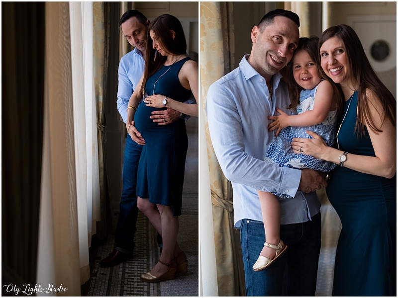 I photographed Gillian & Tawfiq’s wedding a few years ago, and was so excited to hear that they were back in the Buffalo area, expecting their second baby! They wanted an elegant maternity sessions, so we started in my studio and then shot around the Lafayette. I loved getting to meet their little lady, Isla! I’ll be posting their newborn session with sweet baby Alé soon 🙂