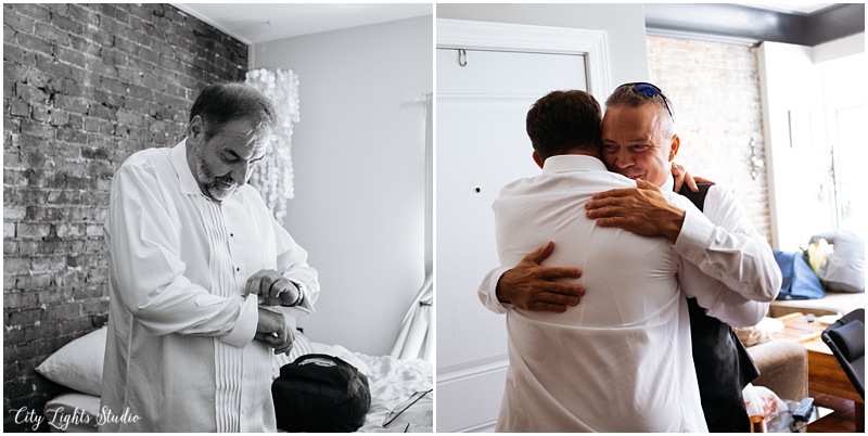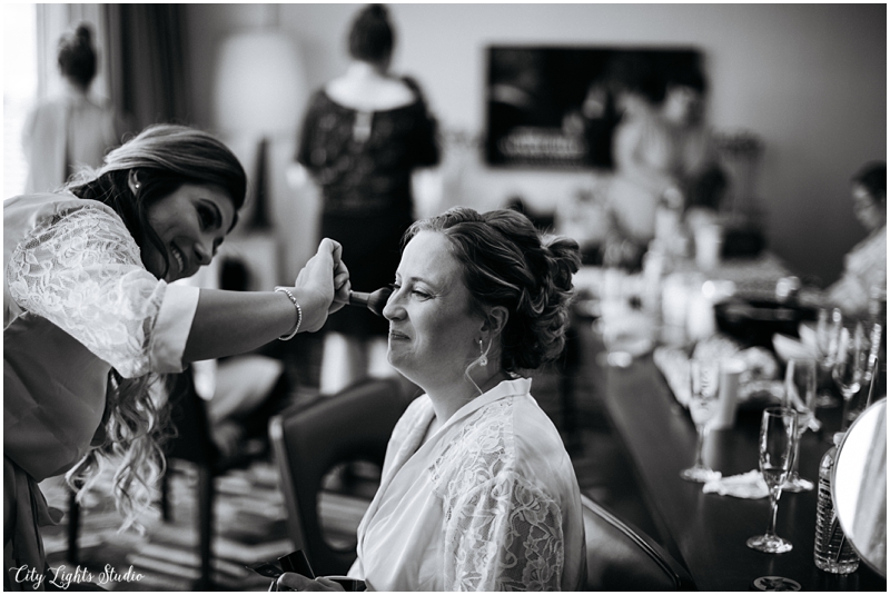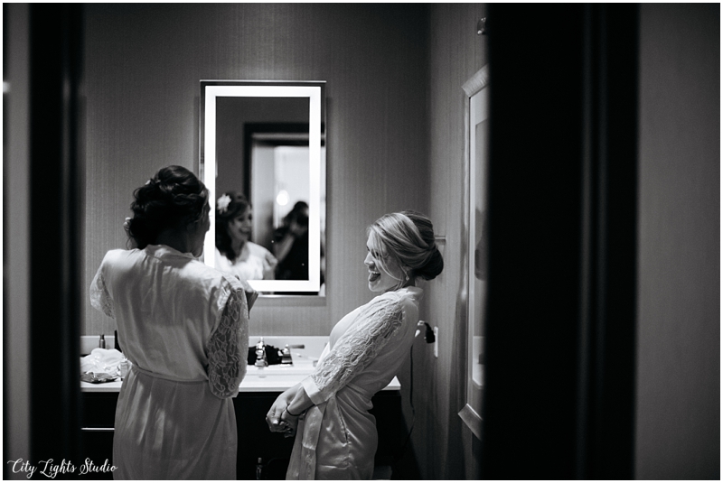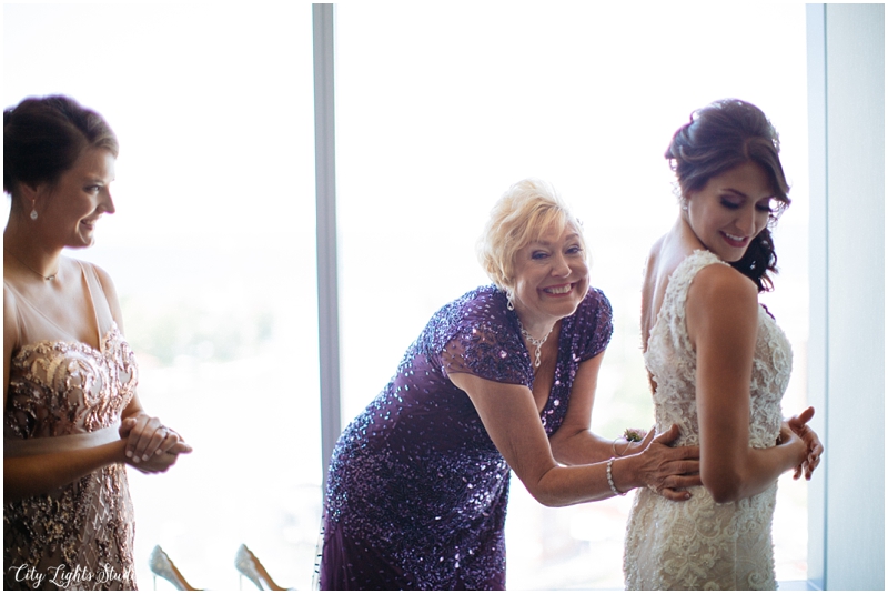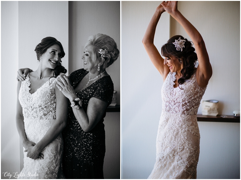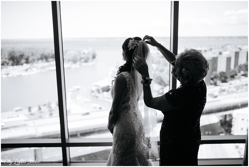 Angela & the girls prepped at The Marriott Harborcenter, getting glam with the team from Salon Elizabeth. Angela was full of excitement, jumping on the bed with her flower girl, twirling around in her dress… She was just SO excited to see her groom. It made my heart happy to see a bride so ready to be married!