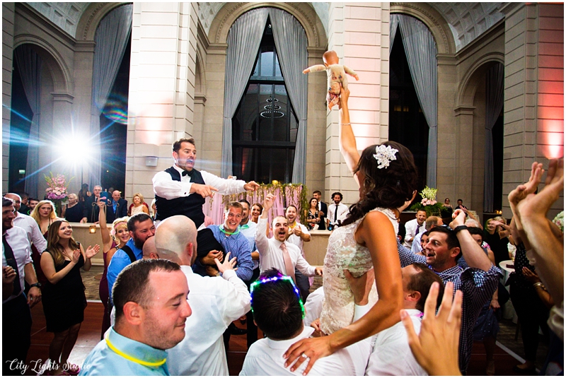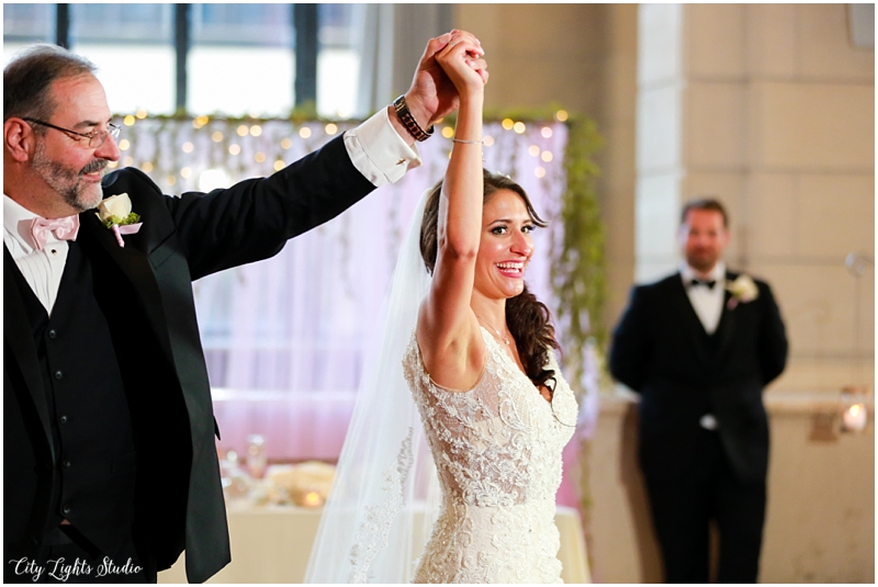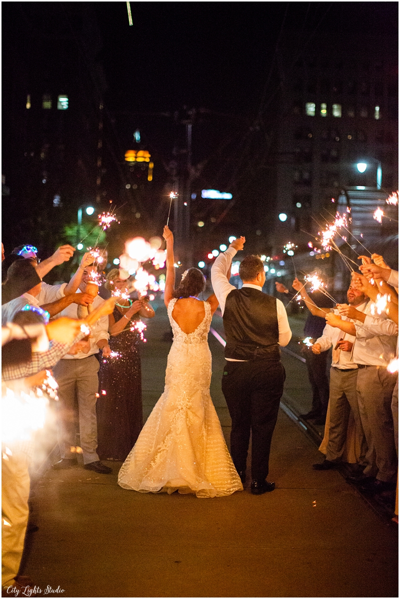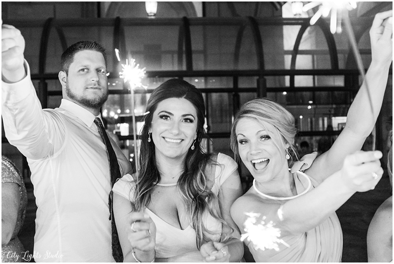 When it was time to party, we headed to their reception, inside the newly opened Admiral Room at The Marin. I love shooting in new spaces, and have been so excited to explore this venue. The building has 40′ ceilings AND A VAULT. I mean, come on! The beautiful space was made complete with touches by Buffalo Floral ArtVillage Bake Shop, Fairy Cakes Cupcakery & B in a Bonnet. It was a gorgeous setting for Angela & Mike to dance all night, before being sent off with sparklers on Main Street.