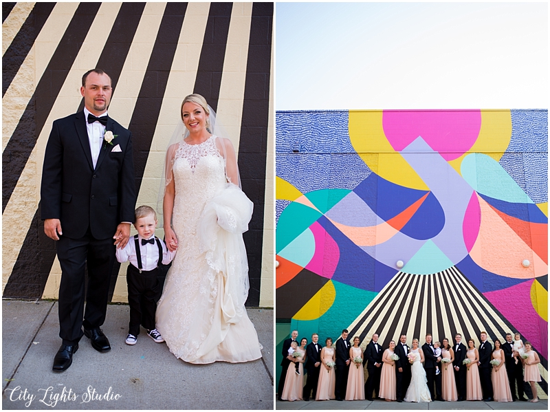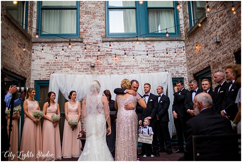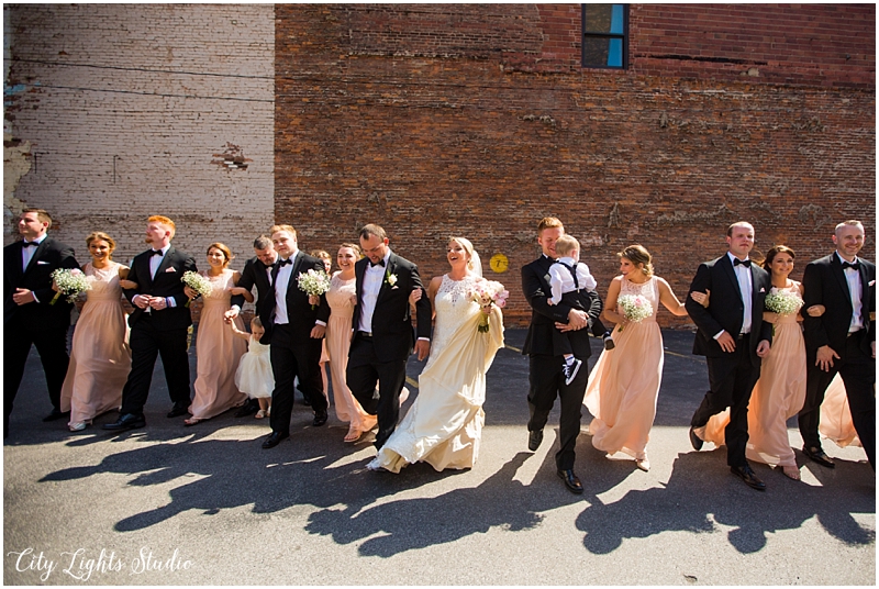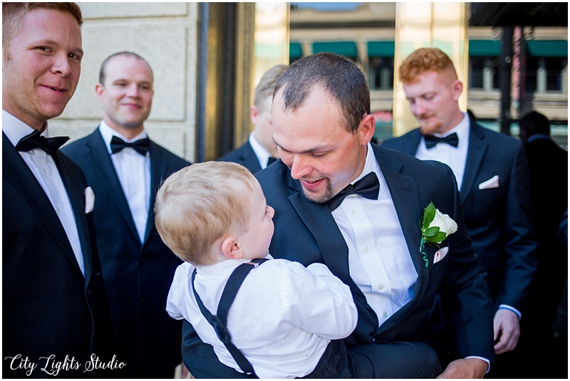 We had the most beautiful time with Jill & Chris on their wedding day! We started at The Hotel @ The Lafayette for the girl’s prep, before Chris & Jill’s First Look. As excited I was for them to see each other, I have to admit, I was really excited to see their son Chase’s reaction too! His face lit up with such joy as he ran towards his mama! Steve captured the perfect shot of this, and it was one of my favorite moments of the day. After the bridal party photos in some of our favorite nooks of the Theater District (because who doesn’t love a stop at Shea’s and the amazing Jessie & Katey mural?!), we headed back to the Lafayette for their ceremony & reception. Those chose such a stunning spot for their ceremony, right inside one of the Pearl @ Lafayette courtyards. The sunlight streaming through and endless string lights made for a beautiful backdrop to their laughter-filled vows. They were simply giddy, half of the crowd was tearing up, and Chase took a nap right in the middle of it all! Afterwards, we headed right upstairs, and they kicked off a huge party, and wild night of dancing. We had a blast, and loved being a part of their day!