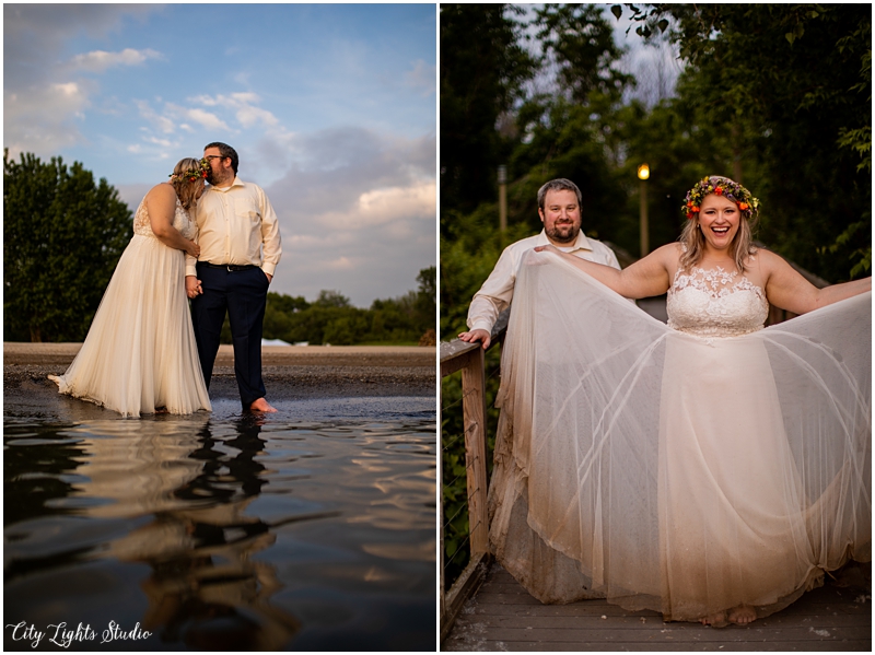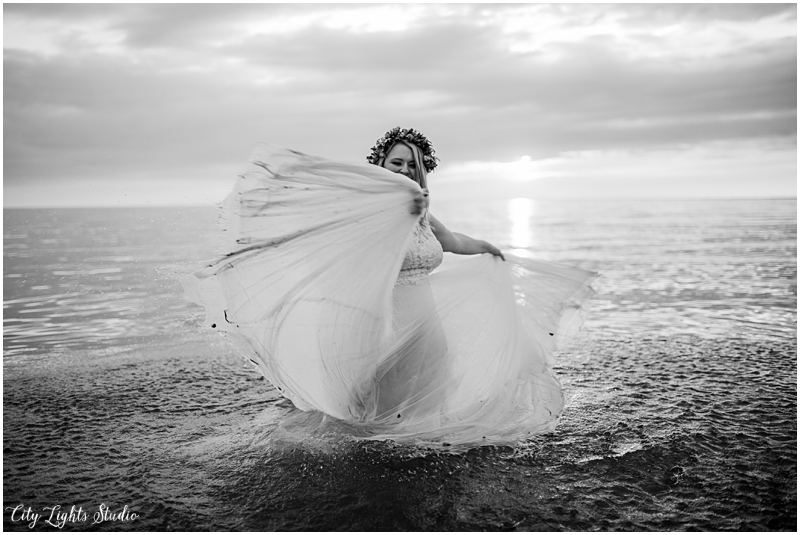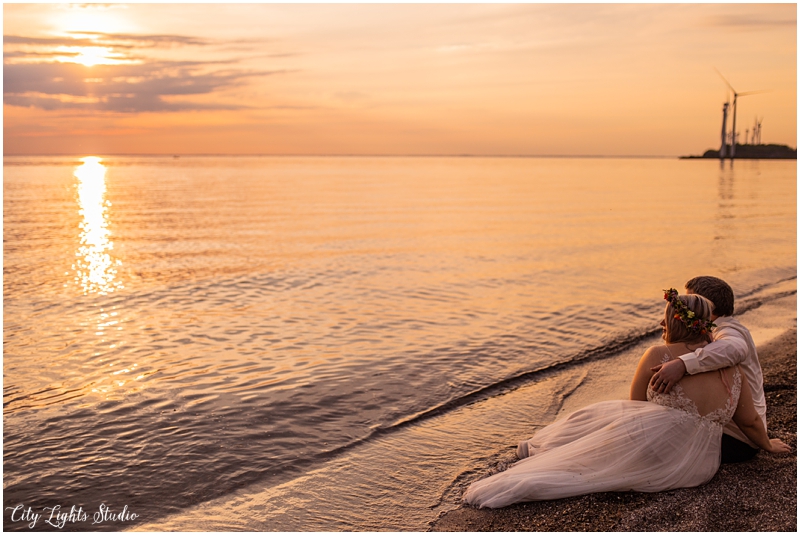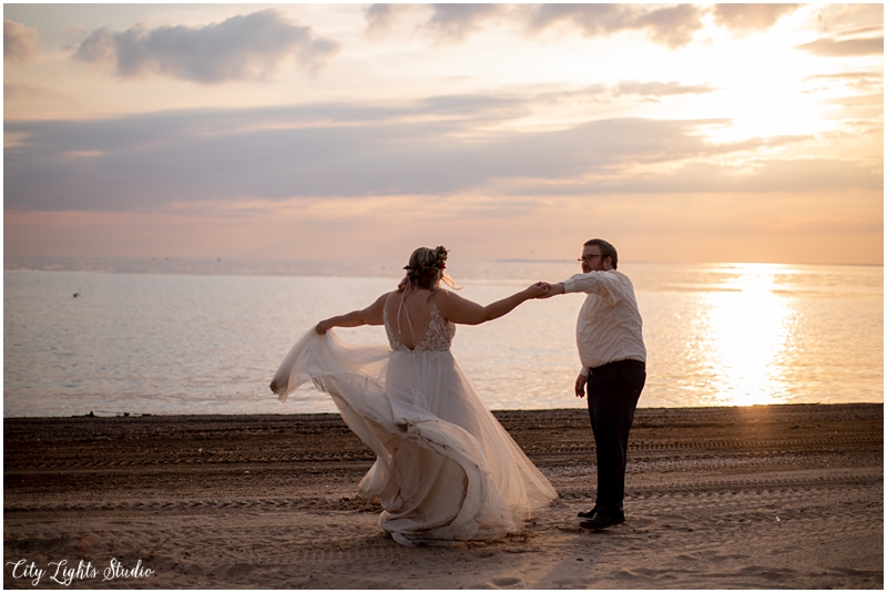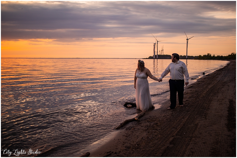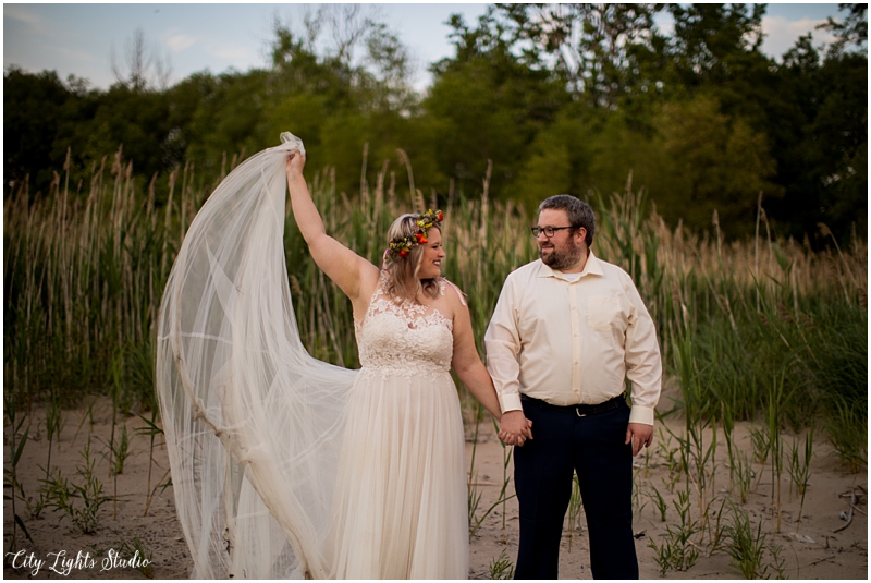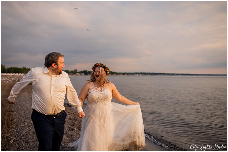 To celebrate their anniversary, Bobbie & Jeff booked a romantic Rock-The-Dress portrait session! They donned their beautiful wedding clothes, but with the big day completed, they were up for anything! We headed to Woodlawn Beach, and shot into the dusk, capturing a magical Lake Erie sunset. They ran in the sand, played in the waves, and it was one of the most FUN shoots! More sessions like this, pretty please!